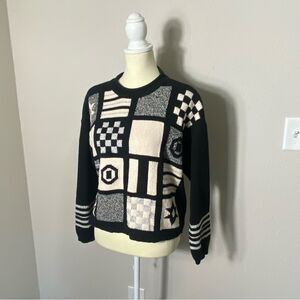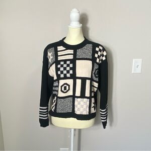 Vintage Lizwear Geometric Patchwork Cotton Knit Sweater Women's Size MP