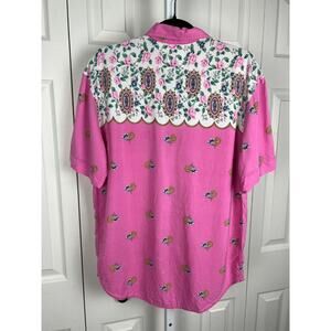 Vintage Lizwear Pink Shirt Floral Print Button Down Cottagecore Rodeo Large