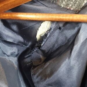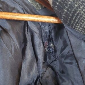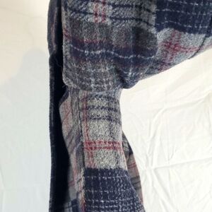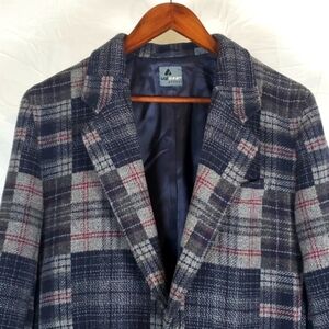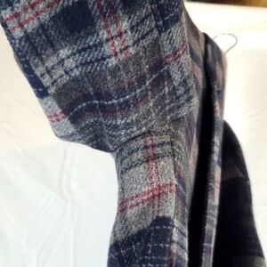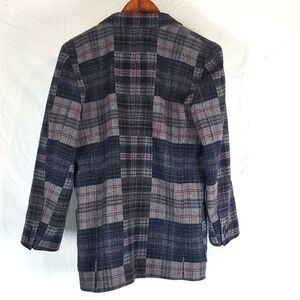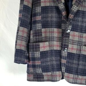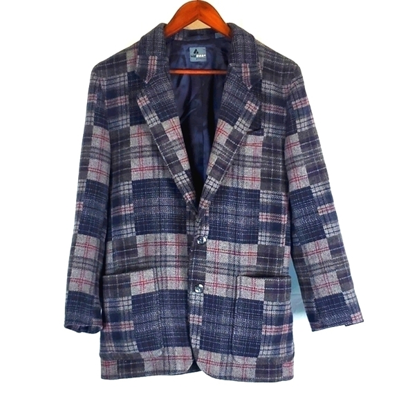 Vintage Lizwear by Liz Claiborne wool blend plaid blazer jacket. Blue, gray, and red plaid. Front pockets. One inner pocket. 2 front buttons. Extra button inside. Lined. Excellent condition, 2 cuts to lining where the shoulder pads were removed. Size 10 petite.