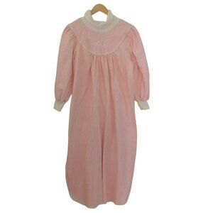 Vintage Llise Stevens Nightgown Womens Pink White Flannel Long Modest Sz Large