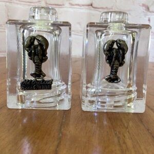 Vintage lobster Old Orchard Beach, Maine resin salt and pepper shaker pair. Each shaker measures approximately 2 1/8” tall, 1 1/8” wide. Only one shaker reads “Old Orchard Beach, Maine”. This set has been previously displayed but never used. Smoke free home.