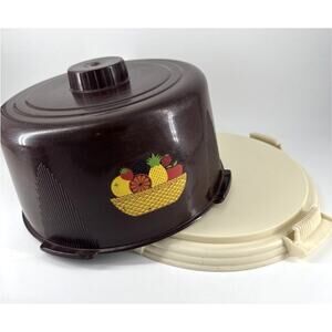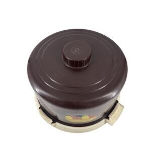 Vintage Locklift Brown Plastic w/Fruit Design Locking Cake Cover Carrier MCM