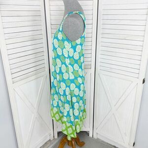 Vintage Loco Lindo Y2K Multi Print Scarf Hem Slip Dress Teal White Green Small