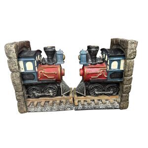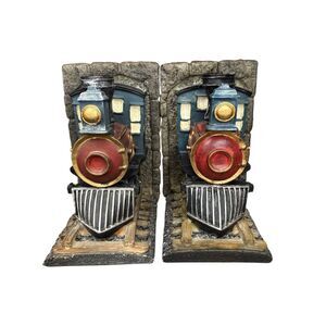 Vintage Locomotive Train Bookends Set of 2 Resin Home Office Collectible 90s