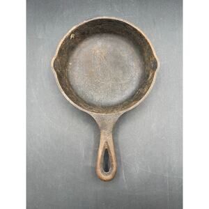 This original Lodge cast iron skillet is a vintage kitchen item. It has a 6 inch diameter and is black in color. It is perfect for use with induction, electric and gas stoves. The skillet/griddle measures 10.25 inches in length and 7 inches in width. It has a unique notch heat ring that is perfect for cooking anything to perfection. This skillet/griddle is an authentic Lodge original. Has varying conditions of rust but can be cleaned. Great value!!