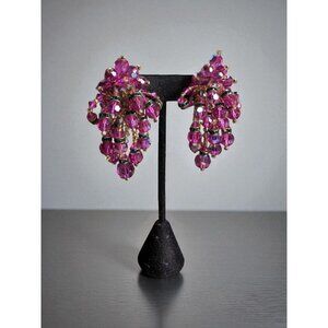 Vintage Lois Ann Clip-on Earrings Art Deco Pink Aurora Borealis Crystal Drop Sta