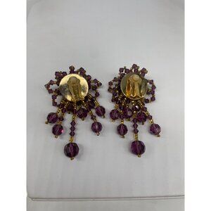 Vintage Lois Ann Purple Beaded Gold-Tone Clip-On Earrings With Cascading Design