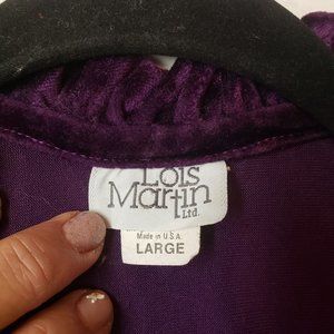 Vintage Lois Martin night gown size Large velvet purple bell sleeve lace trim