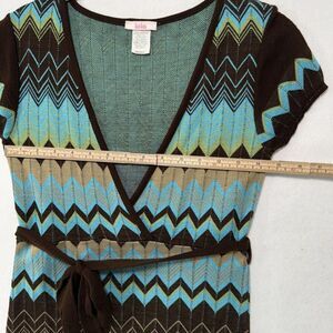 Vintage Lola Y2K Dress Women S Chevron Knit Belted Short Sleeve 90s 00s Boho USA
