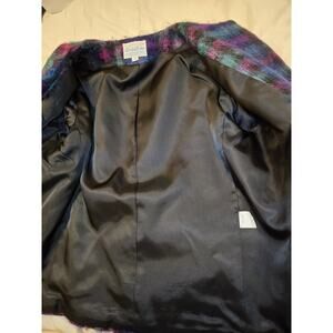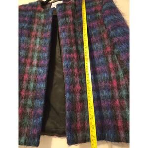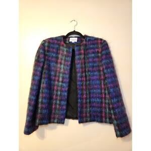 Vintage Lombardi Open Front USA Made Fuzzy Plaid Blazer Jacket 10 M Mohair Wool