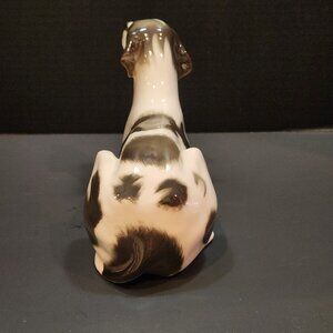 Stunning Pointer dog figurine produced by Lomonosov Porcelain Factory back when Russia was The Soviet Union (1936-1992). The factory is now Imperial Porcelain Factory and is still based in St. Petersburg, Russia. The factory produces highly collectible, hand-painted dog figurines representing over 200 breeds, known for their realism and intricate detail, Each figurine, from Borzois to Chows, is individually painted by Russian artisans, ensuring uniqueness, and marked with the factory's logo, a key identifier for authenticity. This particular figurine is probably from the 70s. In perfect condition, no chips or crazing. Measures 12"L x 3 1/2"W x 6"H and is stamped with the Lomonosov logo and Made in USSR.