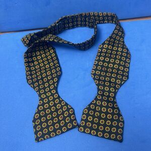 Vintage London Beau Silk Bow Tie Black Red Yellow Geometric Medallion Made USA