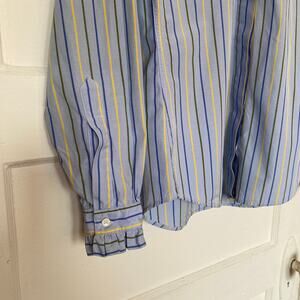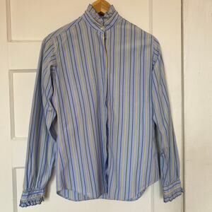 Vintage London Blue Striped Button-up Frilly Blouse Long Sleeve Hilditch & Key