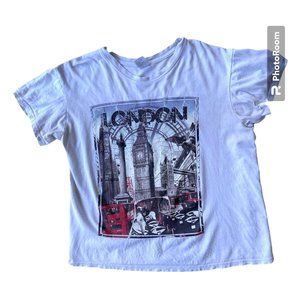 What a cool t shirt...vintage London..so many of beautiful London's places to do, see on graphics on front... Perfect for that trip to the UK