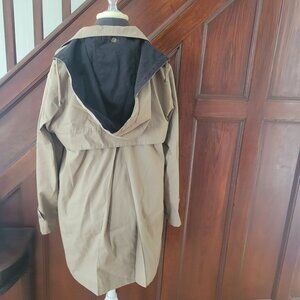 Vintage London Fog Beige Hooded Trench Coat With Button & Zip Closure Size Small