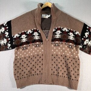 Vintage London Fog Cardigan Sweater Mens Large Brown Aztec Western Comfort 1970