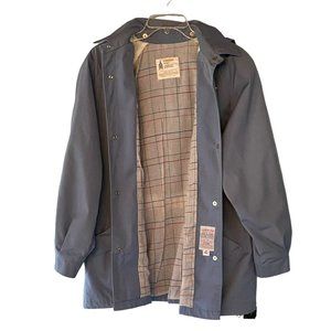 Vintage London Fog Jacket 14 Regular Women's Snap Front Hood Lining Blue Gray