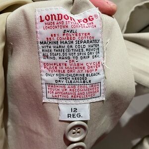Vintage Elegant beige trench coat with classic tailoring. Features signature London Fog craftsmanship. Size 12.