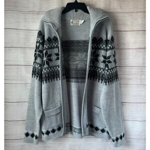 Vintage London Fog Men's Cardigan Sweater Fair Isle Zip Up Front Size XL