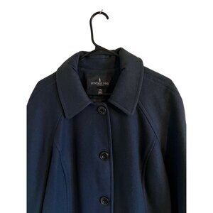 Vintage London Fog Navy Blue Mid Length Wool Blend Button Down Overcoat Peacoat