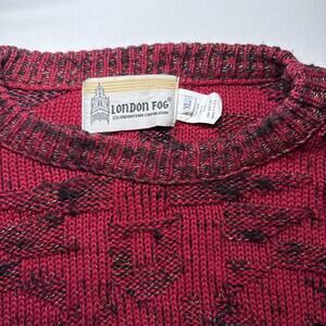 Vintage London Fog Tribal Pattern 3D Knit Red Sweater Mens Size XL 90s Made USA