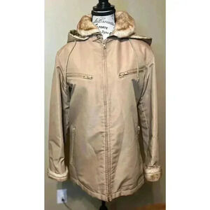 Vintage London Fog Women’s Fur Lined Chore Coat | Removable Hood Wmns Size 11/12