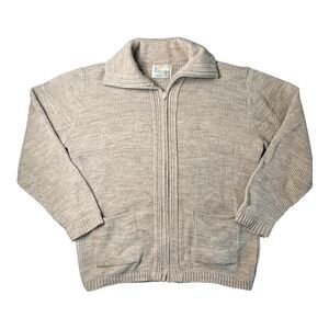 Vintage London Fog Zip Up Chunky Knit Sweater Cardigan Mens Large Grandpa USA