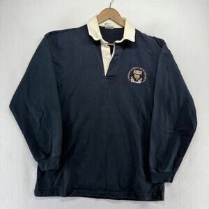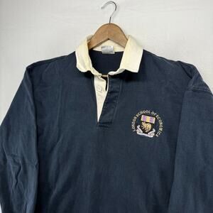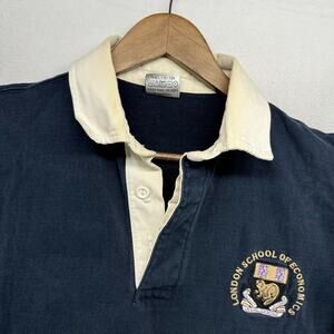 Vintage London School Of Economics Rugby Shirt Men's Large Blue Embroidered 90s