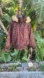 this is a beautiful burgundy and golden black tartan plaid. The jacket zips in two directions and has an over plaque that snaps. There is a zip in or out thin lining for warmth. The hood is removable. It is trimmed in what I believe to be authentic white fox. Jacket is marked a large definitely oversized. Will fit up to a 2X. Excellent condition.