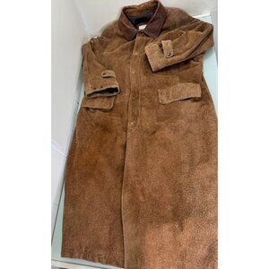 Vintage Lone Pine Leather Suede Long Coat Mens Size 42 Western Front Snap Camel