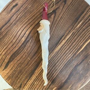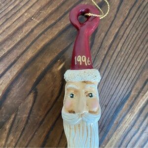 Vintage Long Beard Folk Art Whimsical Santa Ornament 1996 Santa Hat Red White
