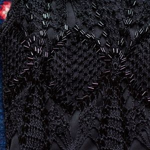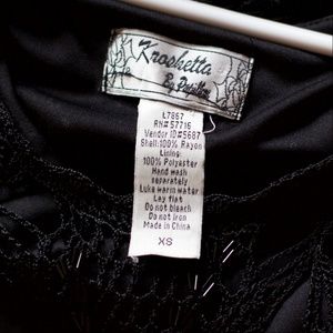 Kroshetta by Papillon long vintage dress in excellent condition. I bought this at a vintage shop years ago when I lived in New Orleans, and I never did get the chance to wear it. Comfortable with beautiful beadwork that trails toward the floor. I'm 5' tall for size reference.
