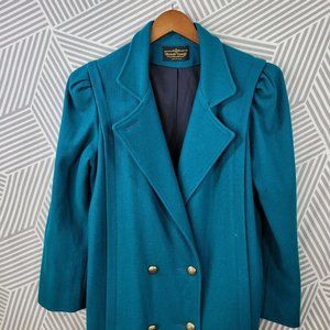 Vintage Long Coat size 6/8 Wool Trench Coat Winter duster Teal Double Breasted