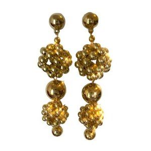 Stunning Vintage Long Gold Drop Earrings Flower Ball Dangle Earrings!