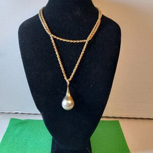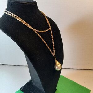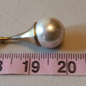 2 inch pendant with faux white pearl at end, faint name possible see pictures