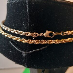 Lobster clasp, link of chain open at end, discolored area near clasp