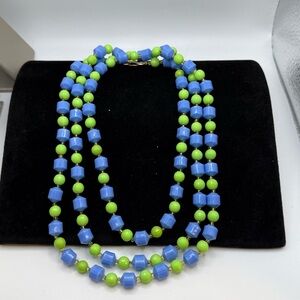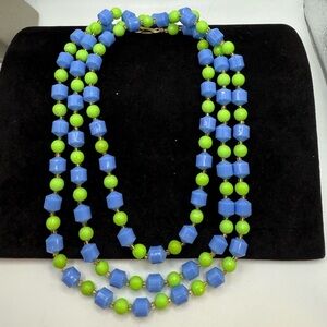 Vintage Long Hong Kong Plastic blue & Green Bead Necklace 53” Single or Double.