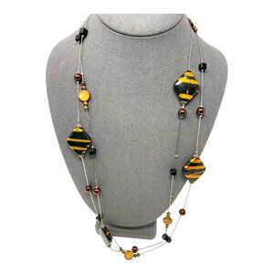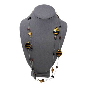 Vintage Long Layered Tigers Eye Colored Beaded Necklace