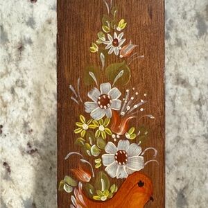 Vintage Long Matchstick Holder Wall mounted wood with tole painting