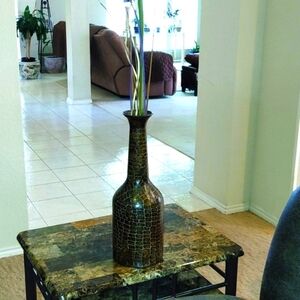 Vintage Long Neck Eggshell Design Tall Brown Vase 15" Length