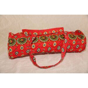Vintage Long Round Quilted Purse Handbag Made In France Provincial Print Fabric