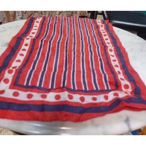 Vintage Long Scarf Red, White, & Blue About 34" x 12" 100% Acetate Made in Japan