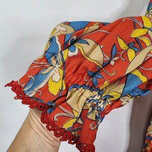 Vintage Long Sleeve Maxi Dress Red Floral Print Size 8?