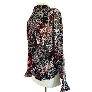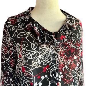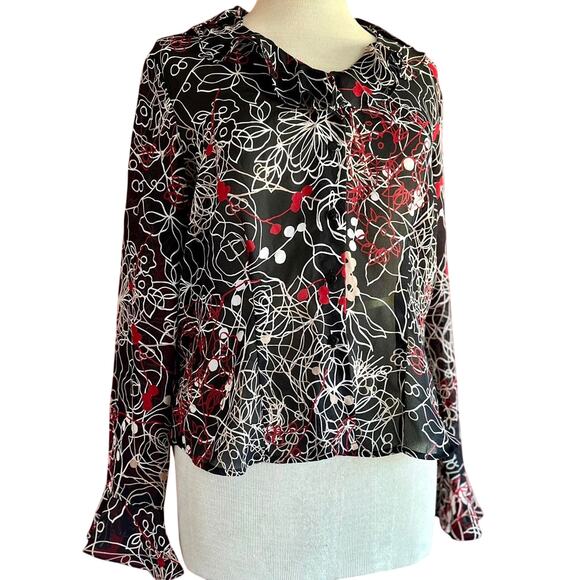 Vintage Long Sleeve Shirt Medium Red Black Sheer Flowy Business Casual Indie