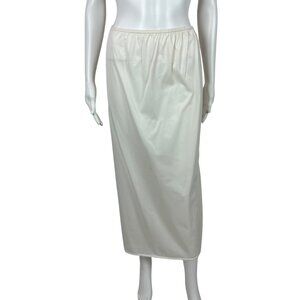 Vintage Long Slip Skirt Women's Medium Cream Side Lace Slit