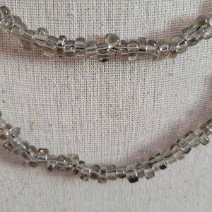 This vintage necklace features a delicate arrangement of gray glass beads, offering a classic and timeless look. It serves as an elegant accessory for those who appreciate understated charm.