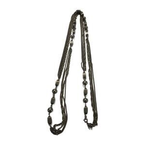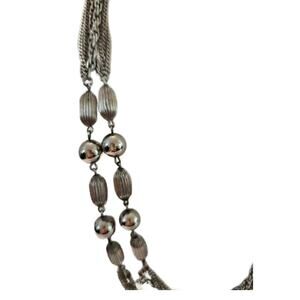 Vintage Long Triple Strand Rope Chain Necklace with Silver Bead Accents 50" L