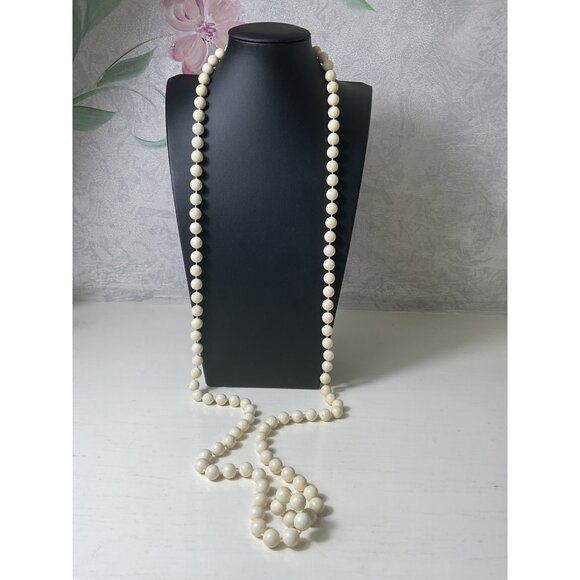 Vintage Long White Beaded Necklace With Spring Ring Clasp