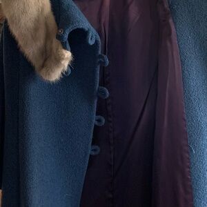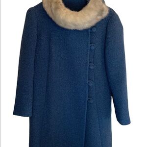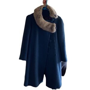 Vintage Long Wool Coat Faux Fur Collar Mid Century Women Winter Jacket Forstmann