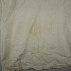This vintage T-shirt features a graphic print of the USA theme, with a crew neck and long sleeves. It is a regular fit size L, suitable for men who love machine washable garments. The T-shirt is produced by Yazbek, a brand that is known for its quality clothing. It is a perfect addition to your wardrobe, especially if you want to show off your patriotism. The T-shirt is suitable for any occasion, and its white color makes it easy to pair with any outfit. This T-shirt is a must-have for anyone who wants to remember the events of 9/11/01 and defend our liberty. Some stains as shown in pictures. Length 26 inches, pit to pit 21 inches.